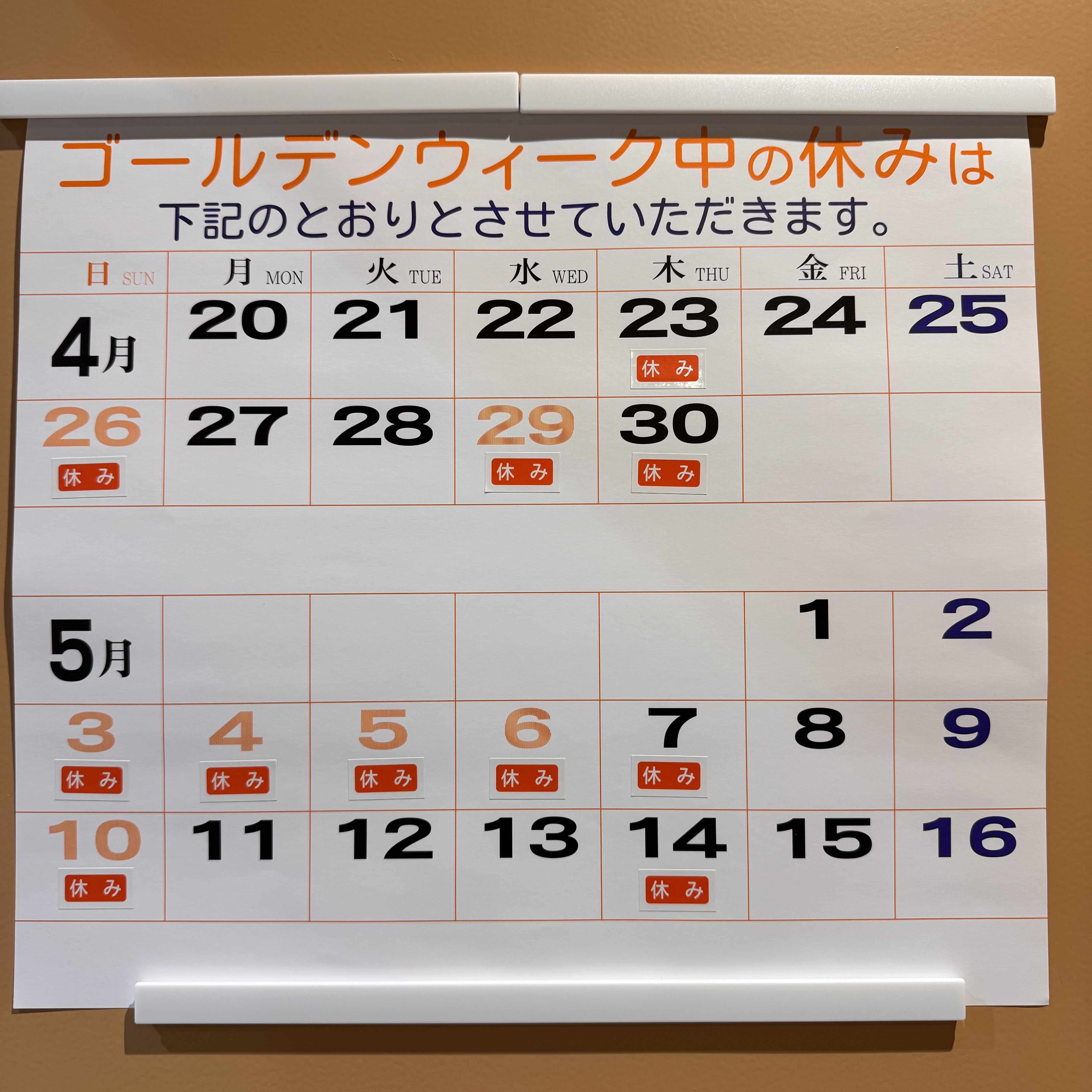 【2026年】ゴールデンウィーク休診日のお知らせ